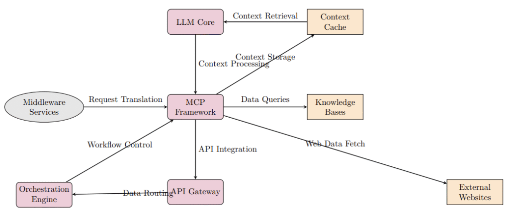 MCP uses middleware to translate API calls for the LLM and an orchestration layer to manage data flow between systems. Tools like RESTful APIs or GraphQL ensure compatibility, while MCP’s design supports error handling and scalability. This ensures LLMs for having a power intelligent and context-aware systems that automate complex tasks efficiently.